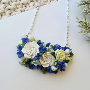 I commission a one of a kind palmer clay necklace inspired by your bridal bouquet.